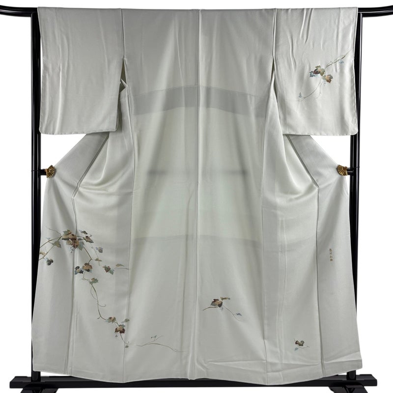 【着物ランク】秀品 【素材】正絹 【身丈】約156cm 【裄丈】約64.5cm 【袖丈】約52.5cm 【袖幅】約33.5cm 【前幅】約24.5cm 【後幅】約30.5cm 【サイズ】M 【着物仕立て】袷 【着用時期】10~5月 【状態ランク】ランクB 【着物着用シーン】披露宴、パーティー、式典、食事会、お茶会、正月