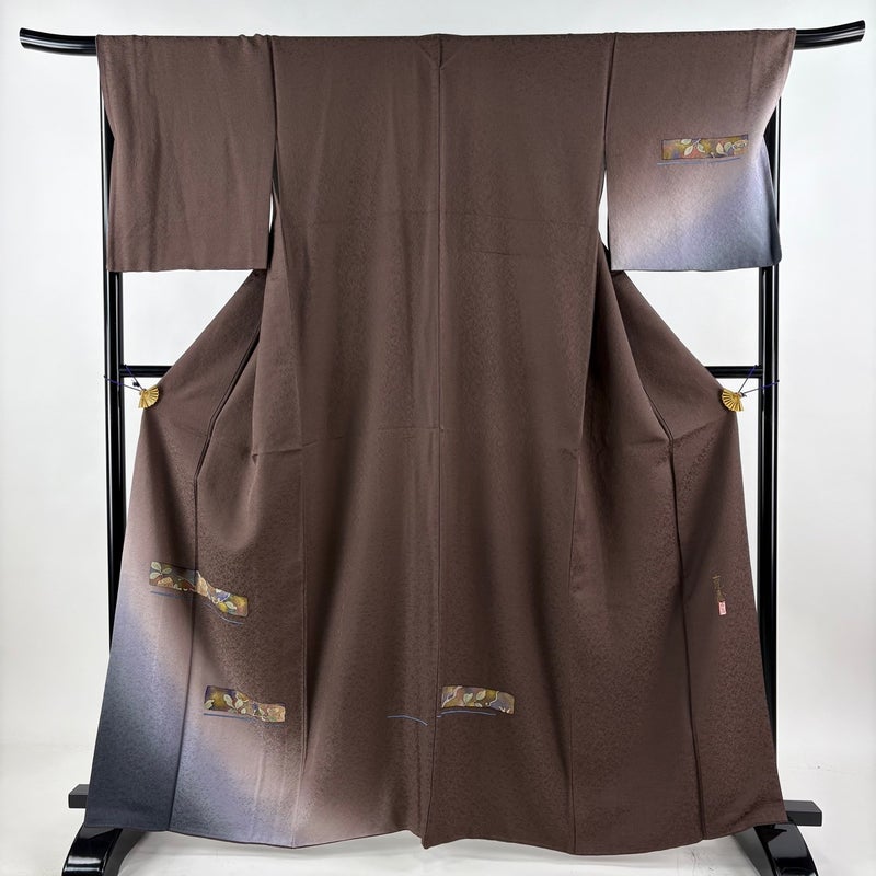 【付下げ】 茶系 焦茶色 名品 A 約160cm~約169cm 裄丈69cm以上 (L)size 袖丈49cm 30000- 美品 五万以下