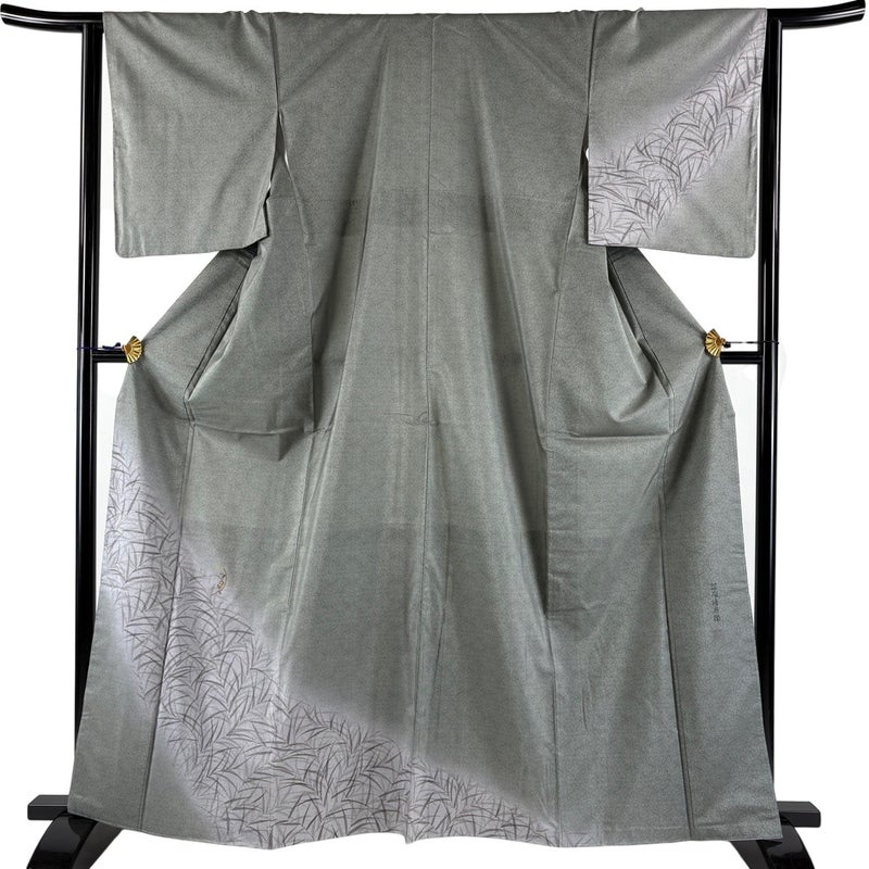 【付下げ】 灰色系 灰緑 秀品 A 約160cm~約169cm 裄丈63cm-64cm (M)size 袖丈49cm 7990-9980 美品 二万以下