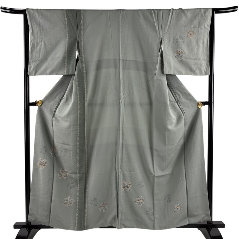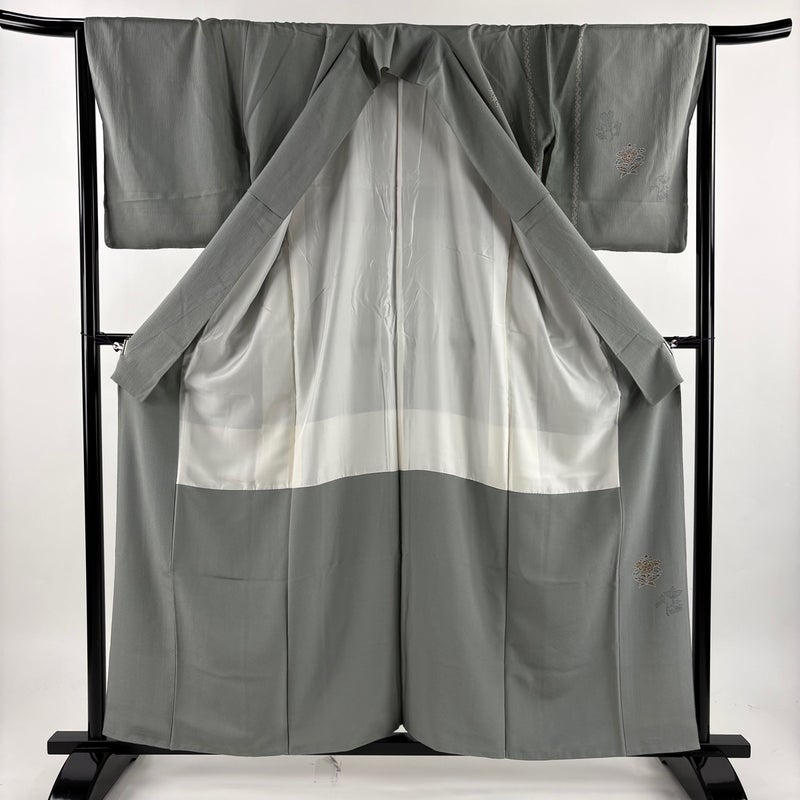 【付下げ】 灰色系 灰緑 秀品 B 約150cm~約159cm 裄丈65cm (M)size 袖丈48cm 4000-7980 二万以下