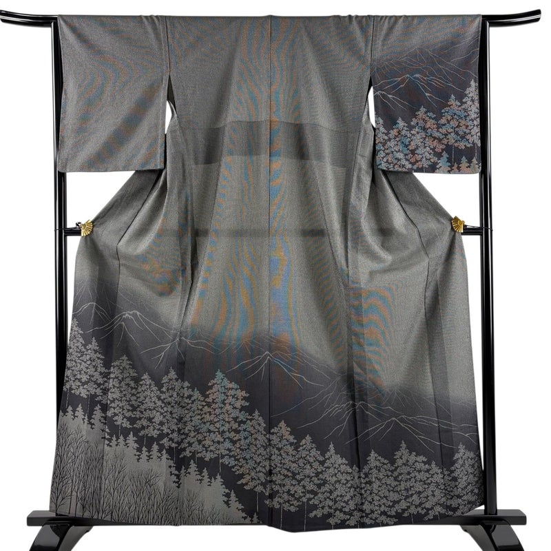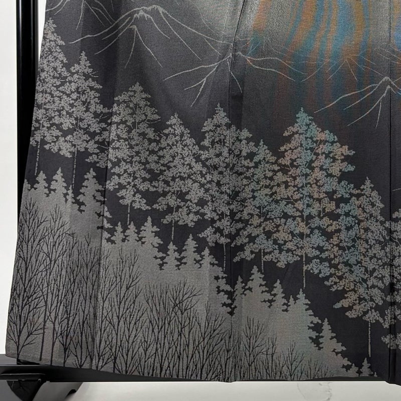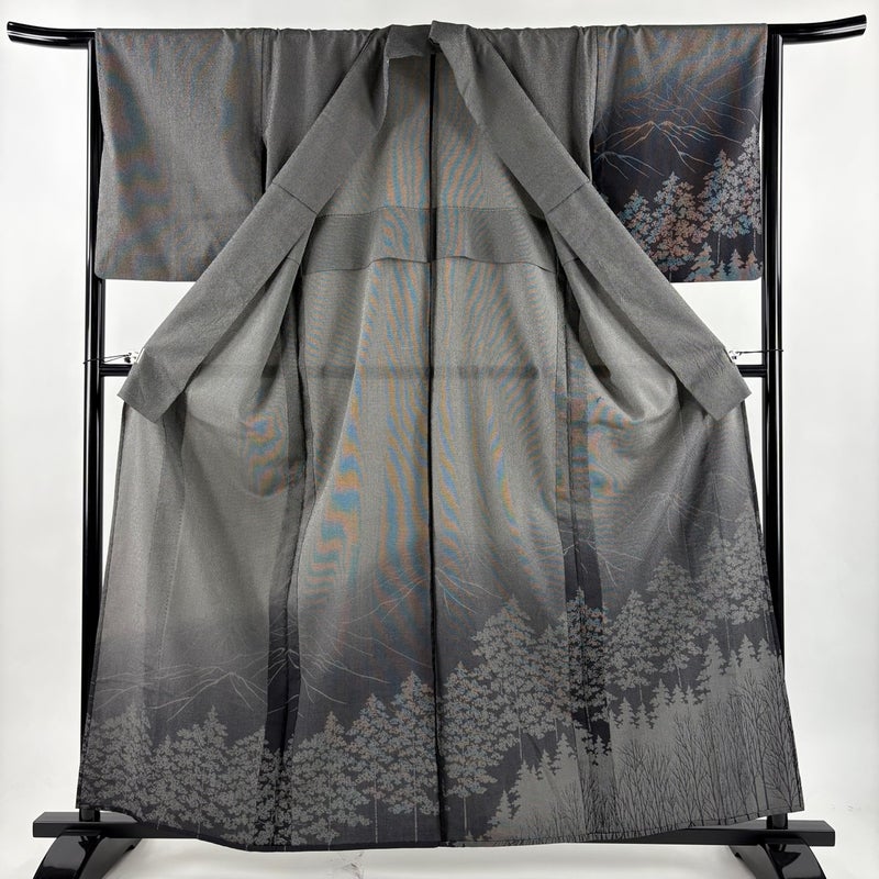 【付下げ】 灰色系 黒灰 秀品 B 約160cm~約169cm 裄丈65cm (M)size 袖丈50cm-60cm 9990-29990 二万以下
