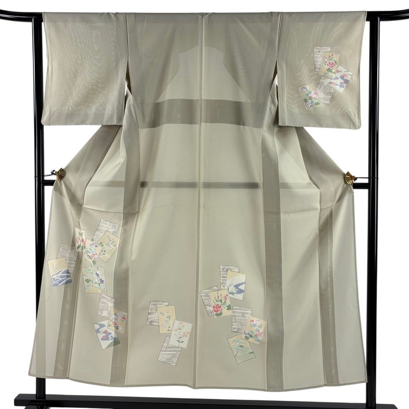 【着物ランク】秀品 【素材】正絹 【身丈】約153cm 【裄丈】約62.5cm 【袖丈】約46.5cm 【袖幅】約32cm 【前幅】約23.5cm 【後幅】約29cm 【サイズ】S 【着物仕立て】薄物 【着用時期】7~8月 【状態ランク】ランクB 【着物着用シーン】披露宴、パーティー、式典、食事会、お茶会、正月