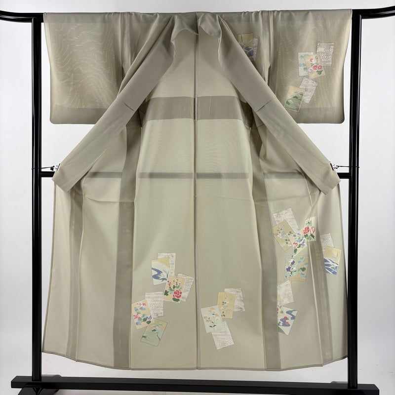 【付下げ】 緑系 抹茶色 秀品 B 約150cm~約159cm 裄丈62cm以下 (S)size 袖丈46cm以下 9990-29990 二万以下