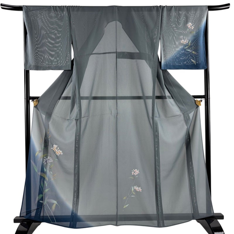 【着物ランク】秀品 【素材】正絹 【身丈】約163.5cm 【裄丈】約67.5cm 【袖丈】約48.5cm 【袖幅】約34cm 【前幅】約26cm 【後幅】約31cm 【サイズ】L 【着物仕立て】薄物 【着用時期】7~8月 【状態ランク】ランクB 【着物着用シーン】披露宴、パーティー、式典、食事会、お茶会、正月