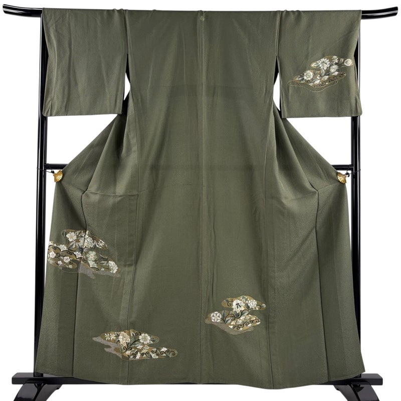 【付下げ】 緑系 深緑 秀品 C 約160cm~約169cm 裄丈67cm-68cm (M)size 袖丈48cm 7990-9980 二万以下