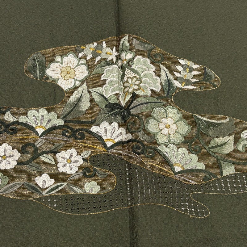 【着物ランク】秀品 【素材】正絹 【身丈】約162cm 【裄丈】約67cm 【袖丈】約48cm 【袖幅】約34.5cm 【前幅】約24cm 【後幅】約30.5cm 【サイズ】M 【着物仕立て】単衣 【着用時期】6/9月 【状態ランク】ランクC 【着物着用シーン】披露宴、パーティー、式典、食事会、お茶会、正月