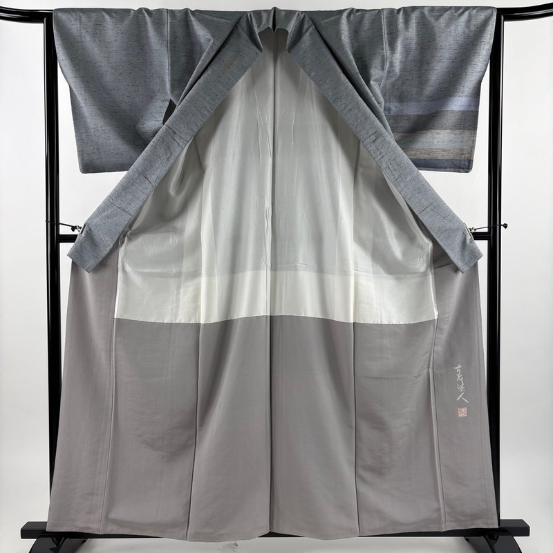 【付下げ】 灰色系 青灰色 名品 C 約160cm~約169cm 裄丈63cm-64cm (M)size 袖丈49cm 9990-29990 二万以下