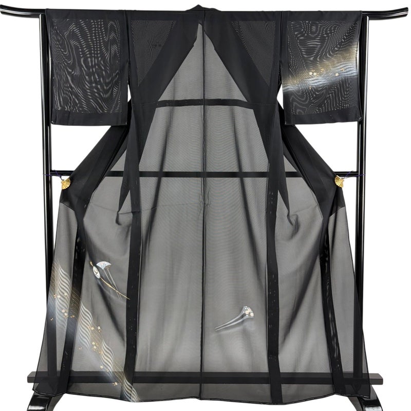 【付下げ】 黒系 黒 秀品 B 約160cm~約169cm 裄丈63cm-64cm (M)size 袖丈48cm 9990-29990 二万以下