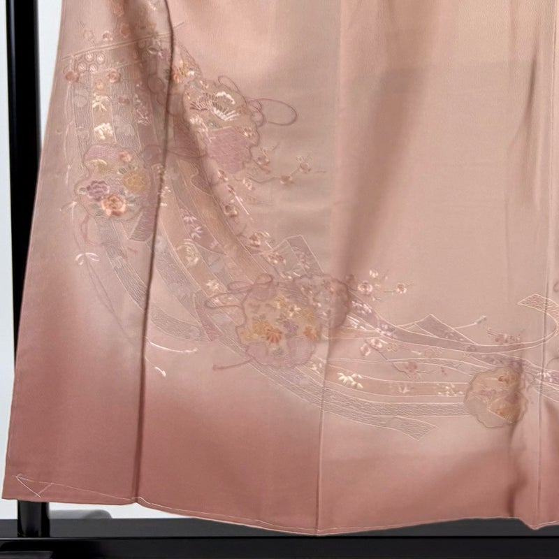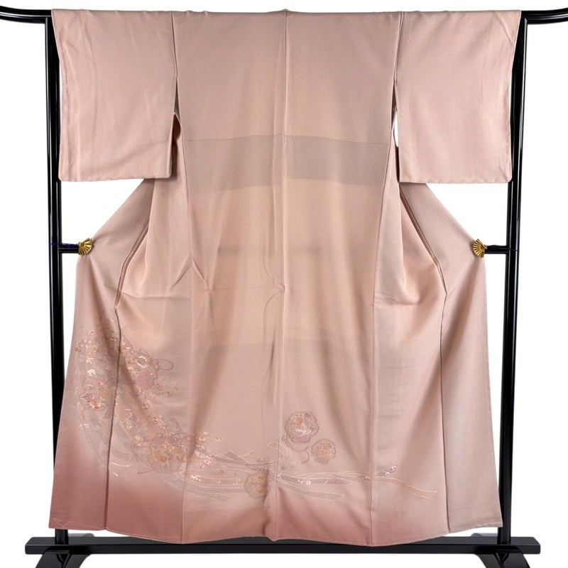 【付下げ】 赤系 ピンクベージュ 秀品 A 約150cm~約159cm 裄丈63cm-64cm (M)size 袖丈49cm 7990-9980 美品 二万以下