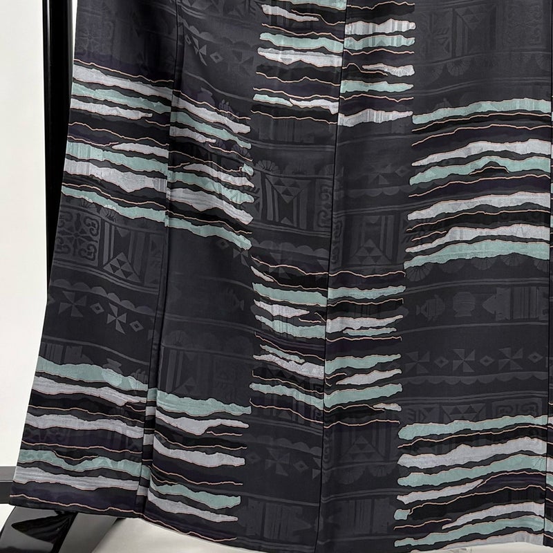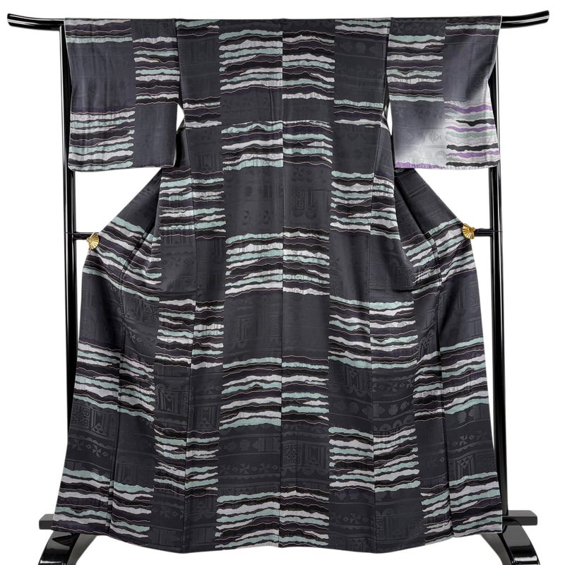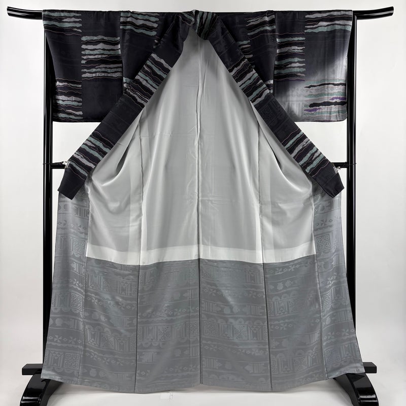 【付下げ】 黒系 墨色 秀品 A 約160cm~約169cm 裄丈67cm-68cm (M)size 袖丈49cm 7990-9980 美品 二万以下