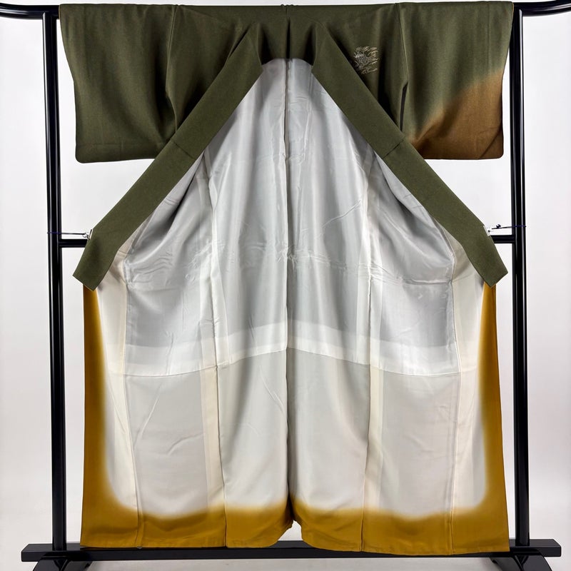 【付下げ】 茶系 茶緑色 秀品 B 約150cm~約159cm 裄丈63cm-64cm (S)size 袖丈46cm以下 4000-7980 二万以下