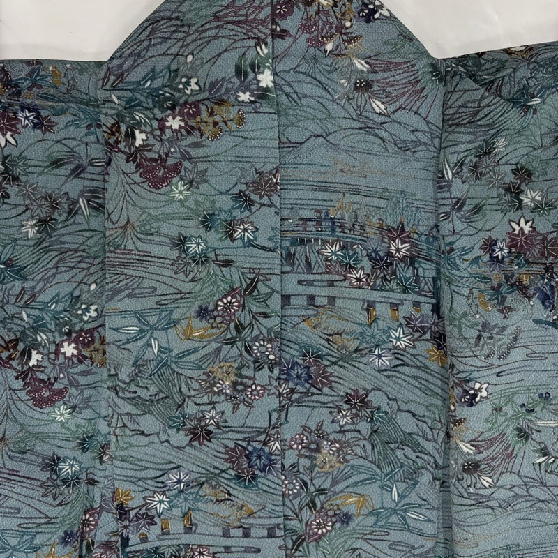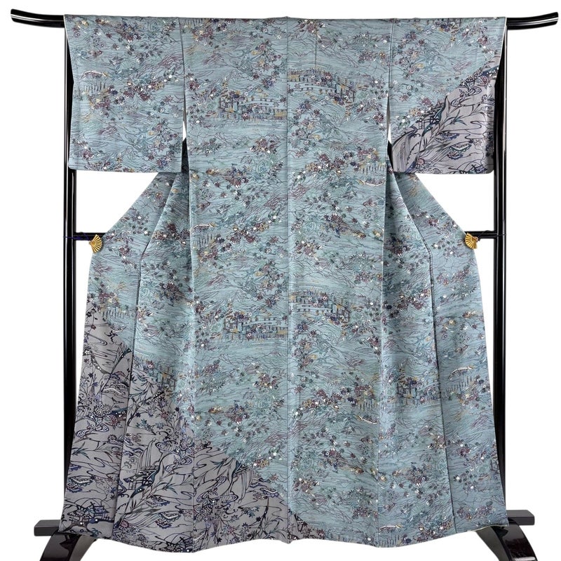 【付下げ】 灰色系 青灰色 秀品 B 約160cm~約169cm 裄丈63cm-64cm (M)size 袖丈49cm 4000-7980 二万以下