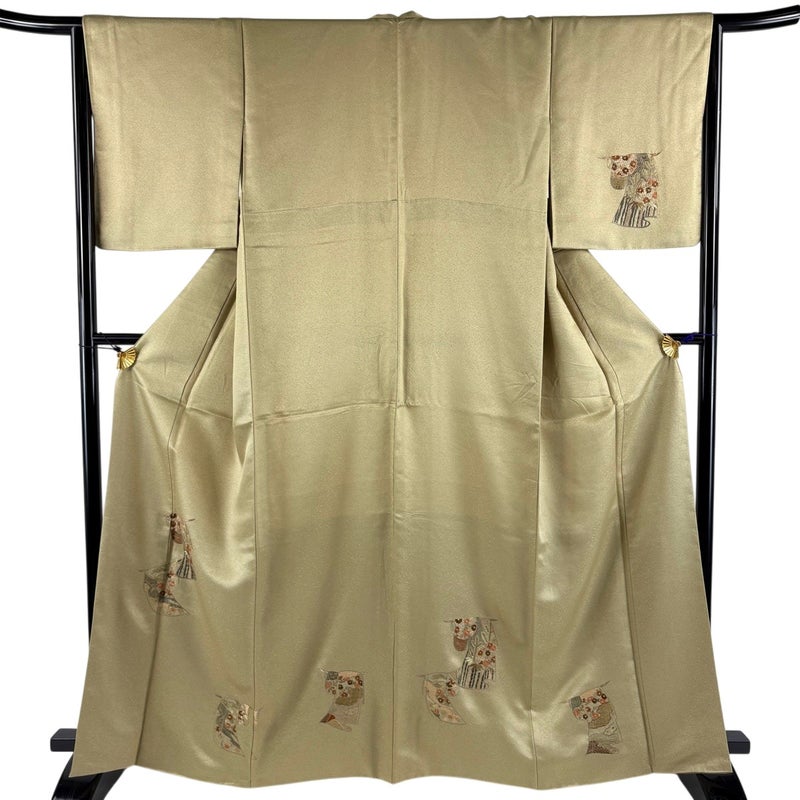 【着物ランク】秀品 【素材】正絹 【身丈】約165cm 【裄丈】約64.5cm 【袖丈】約49.5cm 【袖幅】約32cm 【前幅】約26cm 【後幅】約33cm 【サイズ】M 【着物仕立て】袷 【着用時期】10~5月 【状態ランク】ランクA 【着物着用シーン】披露宴、パーティー、式典、食事会、お茶会、正月