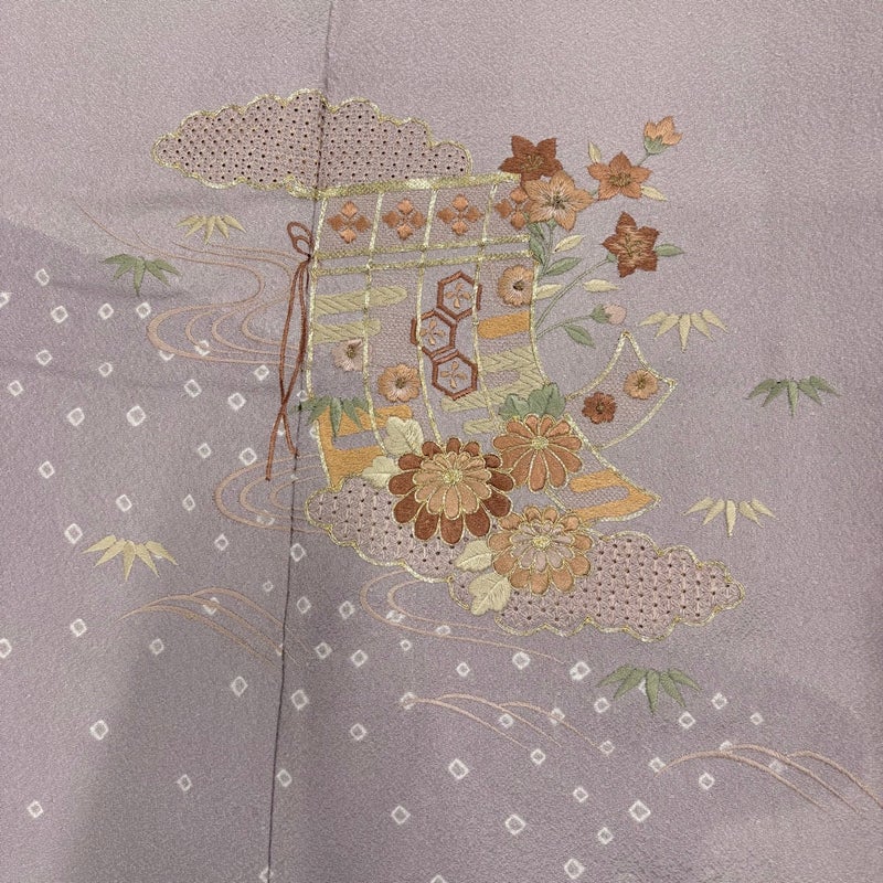 【着物ランク】秀品 【素材】正絹 【身丈】約153.5cm 【裄丈】約65.5cm 【袖丈】約49cm 【袖幅】約34cm 【前幅】約25cm 【後幅】約30.5cm 【サイズ】M 【着物仕立て】袷 【着用時期】10~5月 【状態ランク】ランクB 【着物着用シーン】披露宴、パーティー、式典、食事会、お茶会、正月