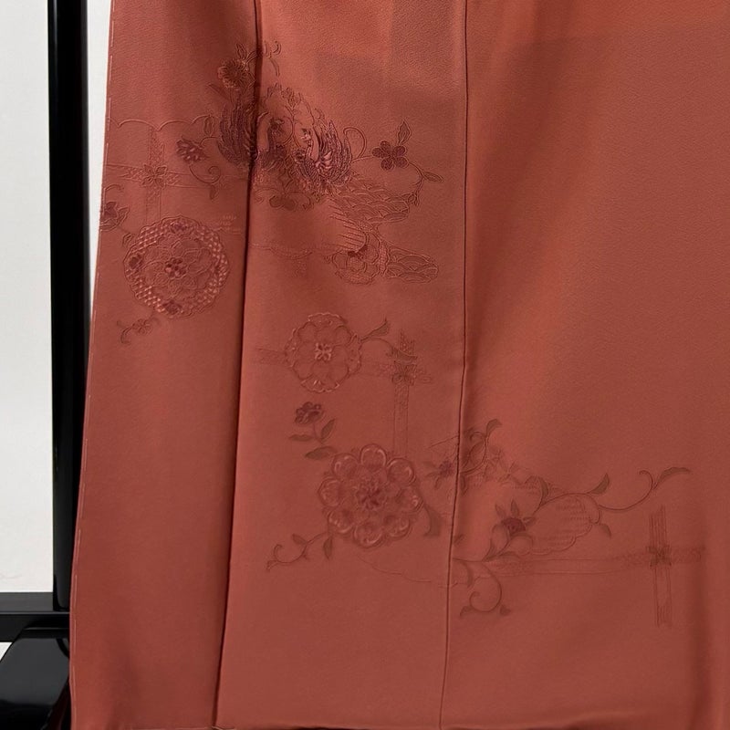 【付下げ】 赤系 サーモンピンク 秀品 A 約160cm~約169cm 裄丈67cm-68cm (M)size 袖丈50cm-60cm 7990-9980 美品 二万以下