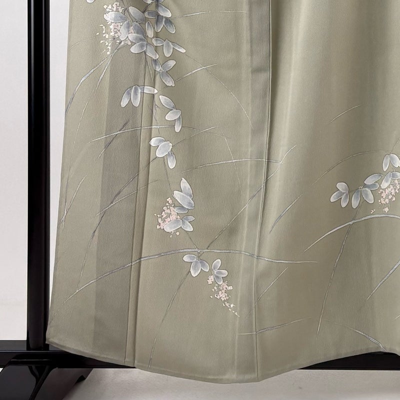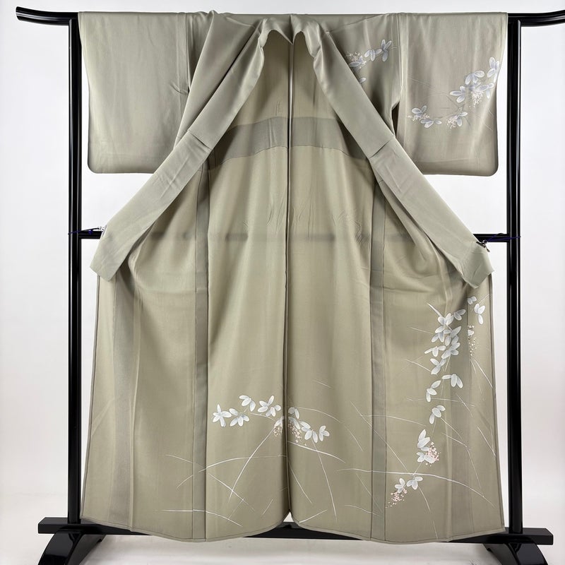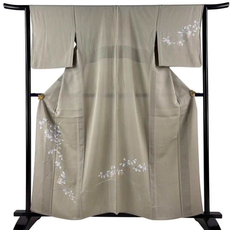 【付下げ】 灰色系 灰緑 秀品 C 約150cm~約159cm 裄丈63cm-64cm (S)size 袖丈49cm 7990-9980 二万以下