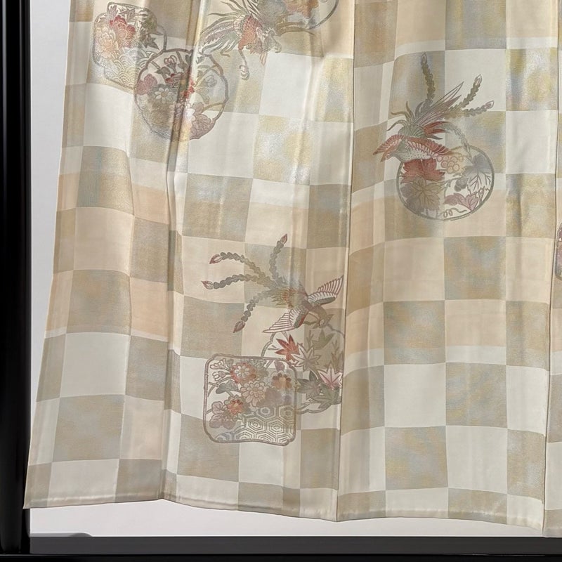 【着物ランク】秀品 【素材】正絹 【身丈】約153cm 【裄丈】約63cm 【袖丈】約47cm 【袖幅】約32cm 【前幅】約23cm 【後幅】約29cm 【サイズ】S 【着物仕立て】単衣 【着用時期】6/9月 【状態ランク】ランクB 【着物着用シーン】披露宴、パーティー、式典、食事会、お茶会、正月