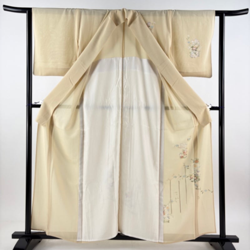 【付下げ】 白系 ベージュ 秀品 A 約150cm~約159cm 裄丈62cm以下 (S)size 袖丈46cm以下 9990-29990 美品 二万以下
