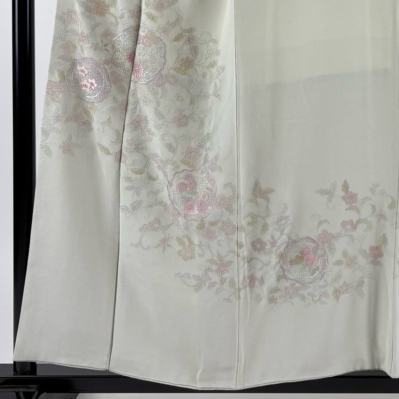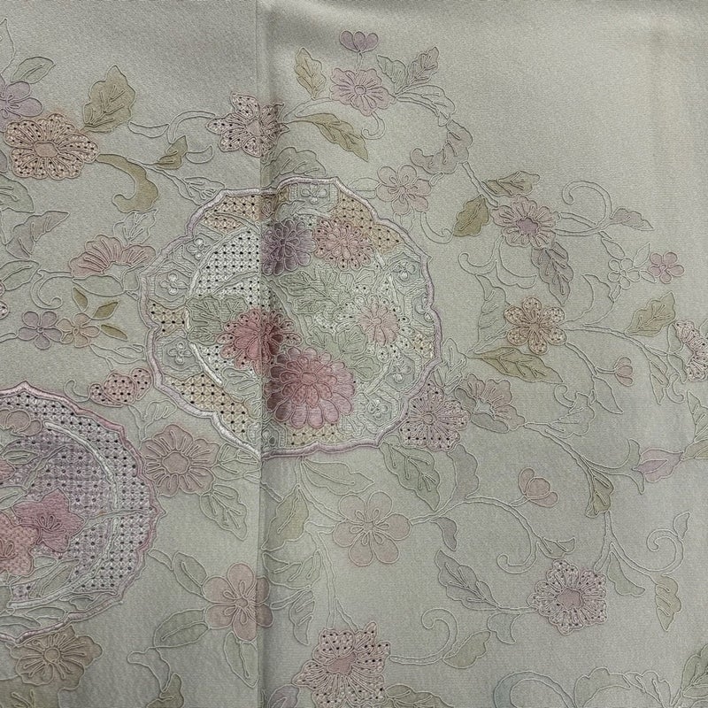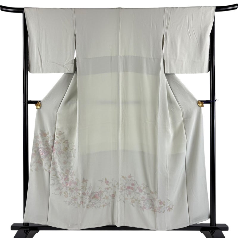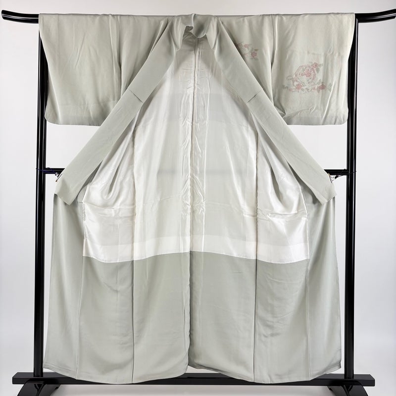 【付下げ】 灰色系 灰緑 秀品 B 約150cm~約159cm 裄丈66cm (M)size 袖丈47cm 4000-7980 二万以下