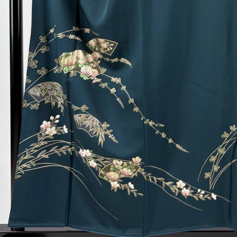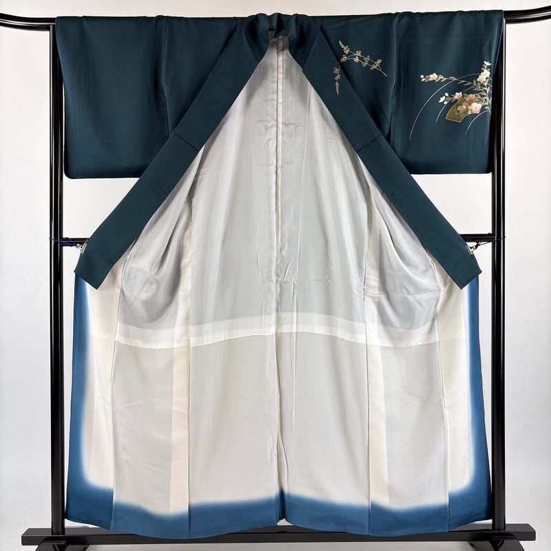 【付下げ】 緑系 深緑 秀品 B 約150cm~約159cm 裄丈65cm (M)size 袖丈48cm 4000-7980 二万以下
