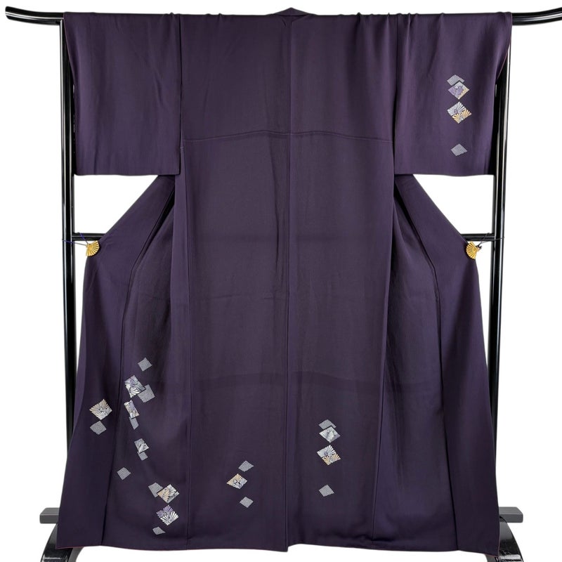 【付下げ】 紫系 濃紫 秀品 A 約160cm~約169cm 裄丈67cm-68cm (L)size 袖丈49cm 7990-9980 美品 二万以下