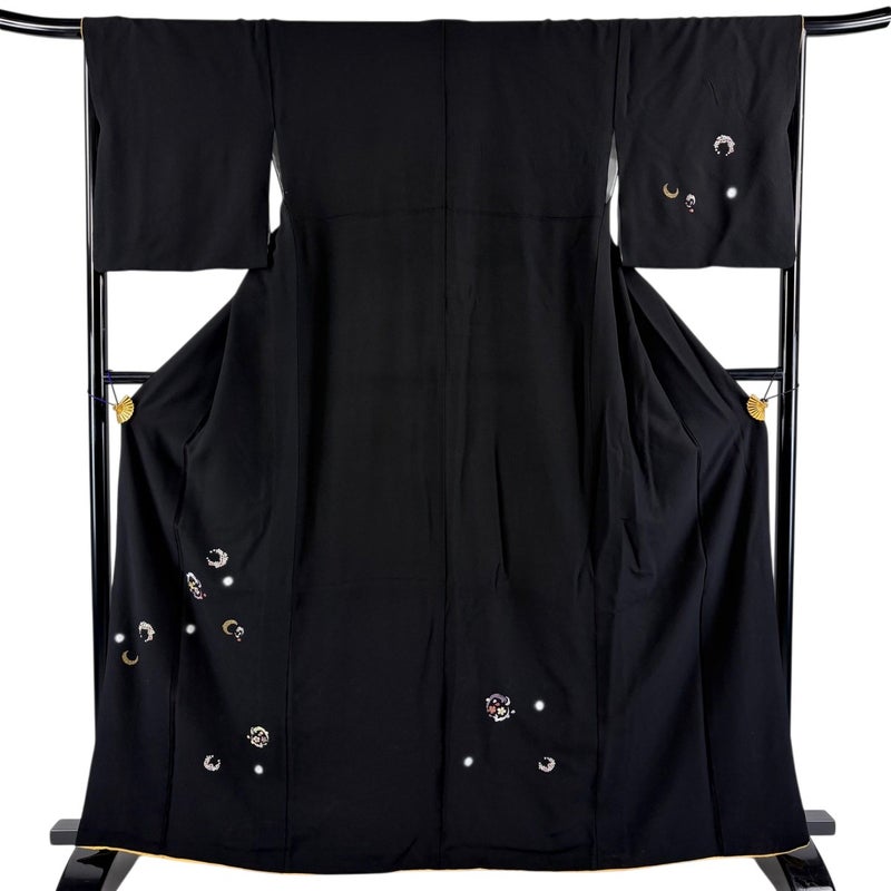 【付下げ】 黒系 黒 秀品 B 約160cm~約169cm 裄丈66cm (M)size 袖丈48cm 4000-7980 二万以下