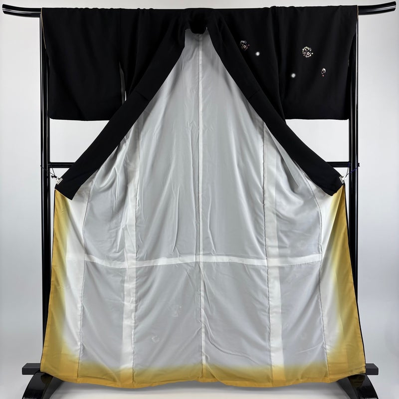 【着物ランク】秀品 【素材】正絹 【身丈】約164cm 【裄丈】約66cm 【袖丈】約48.5cm 【袖幅】約33cm 【前幅】約23cm 【後幅】約29.5cm 【サイズ】M 【着物仕立て】袷 【着用時期】10~5月 【状態ランク】ランクB 【着物着用シーン】披露宴、パーティー、式典、食事会、お茶会、正月