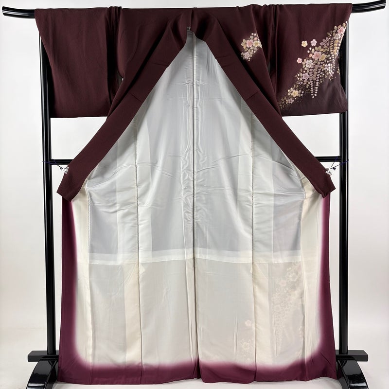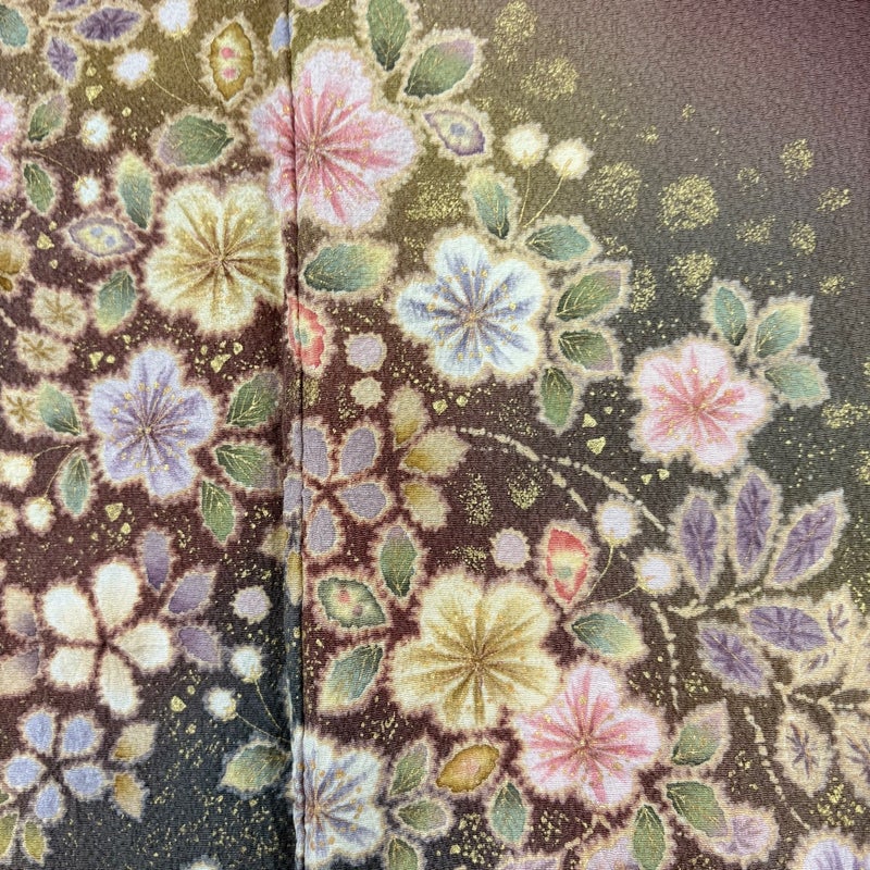 【付下げ】 茶系 茶紫 秀品 A 約160cm~約169cm 裄丈69cm以上 (L)size 袖丈49cm 7990-9980 美品 二万以下