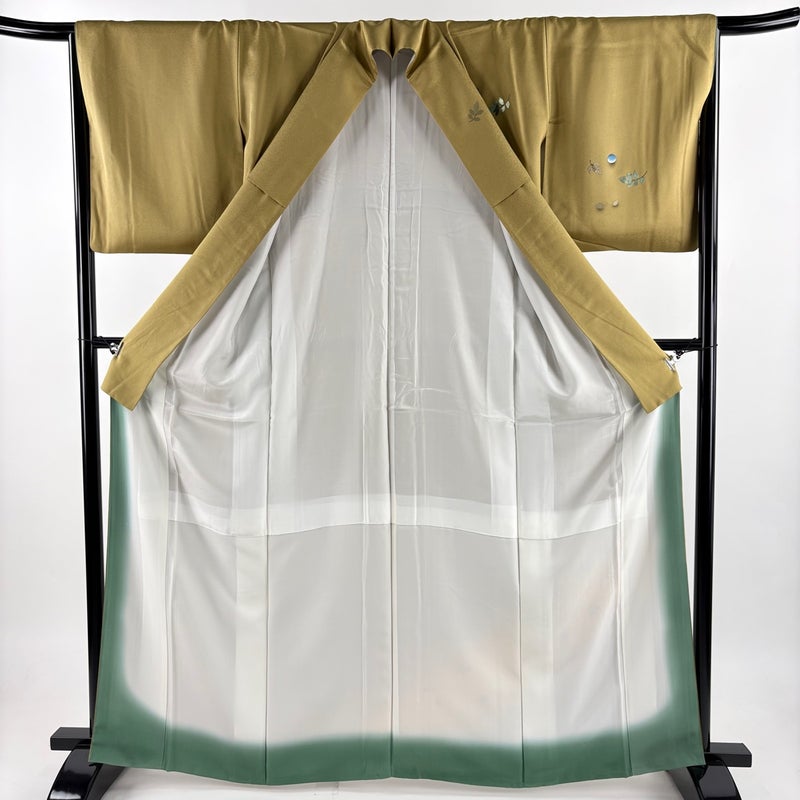 【付下げ】 茶系 茶緑色 秀品 B 約160cm~約169cm 裄丈65cm (M)size 袖丈48cm 4000-7980 二万以下