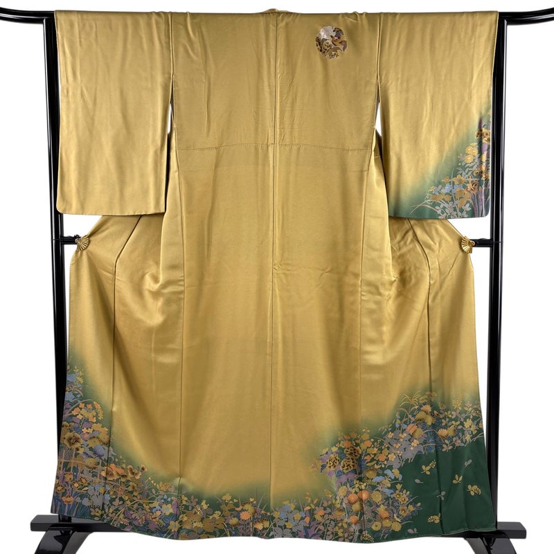 【着物ランク】秀品 【素材】正絹 【身丈】約160.5cm 【裄丈】約63.5cm 【袖丈】約60.5cm 【袖幅】約33cm 【前幅】約24cm 【後幅】約29.5cm 【サイズ】S 【着物仕立て】袷 【着用時期】10~5月 【状態ランク】ランクB 【着物着用シーン】披露宴、パーティー、式典、食事会、お茶会、正月