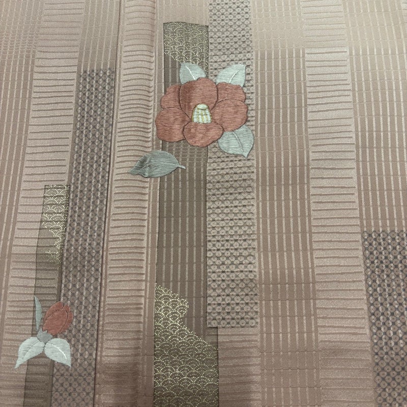 合わせる帯の色柄により、お召しいただく席を選べる付下げです。 帯により印象を変える事の出来る印象のお着物は、様々に活躍してくれることでしょう。 ※身丈・裄丈の縫込みの長さは測っておりません。 左衿にシミ、衿周りや両袖口中に汚れ、上前に糸ゆるみ、表地所々に金彩の変色がございます。 リユース品としては良い状態で、まだまだご活用頂けると思われます。 ※なお、厳しく商品の状態確認を行っておりますが、記載の汚れ以外にも見落とし箇所がある可能性がある旨ご了承いただけますと幸いです。 沢山の商品の中からご覧いただき誠にありがとうございます。