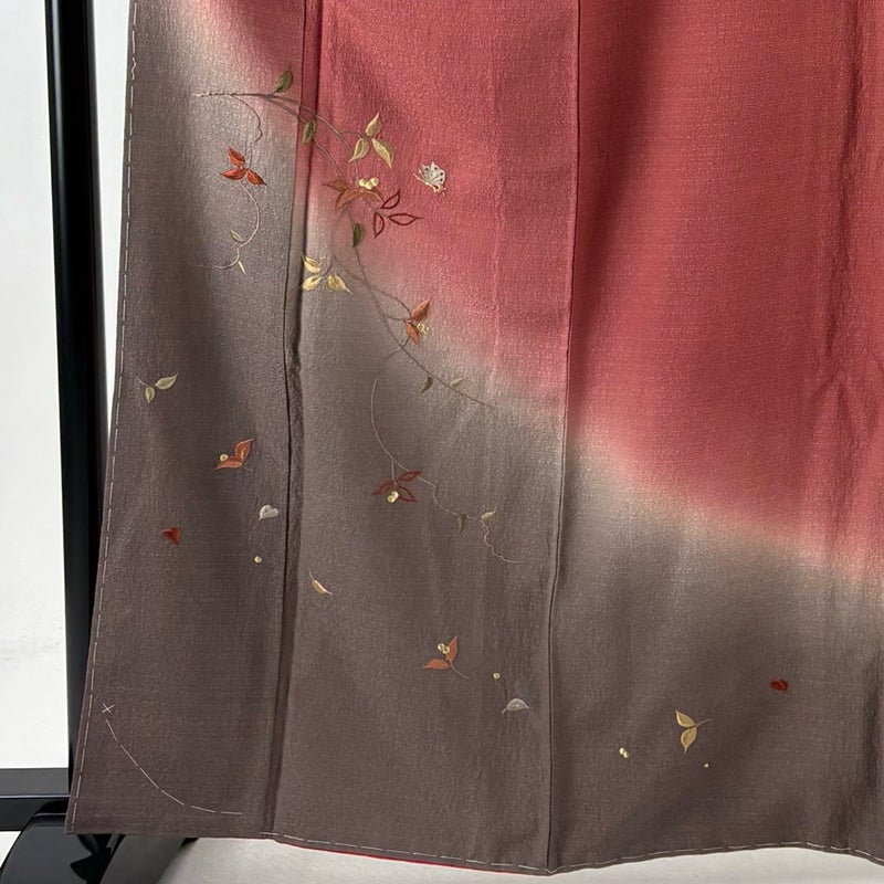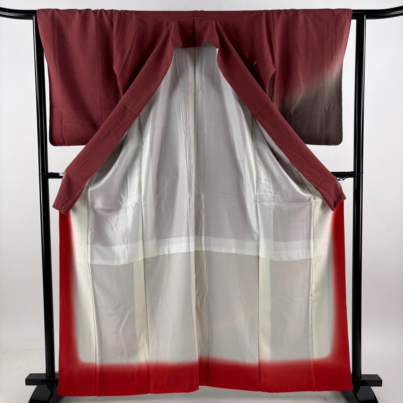 【付下げ】 赤系 えんじ色 秀品 B 約160cm~約169cm 裄丈63cm-64cm (S)size 袖丈50cm-60cm 4000-7980 二万以下