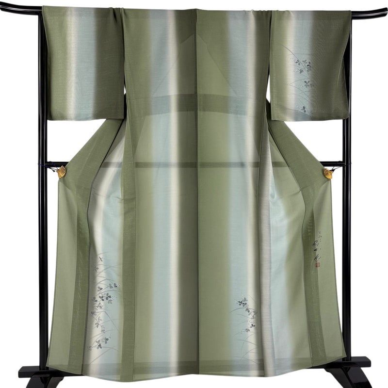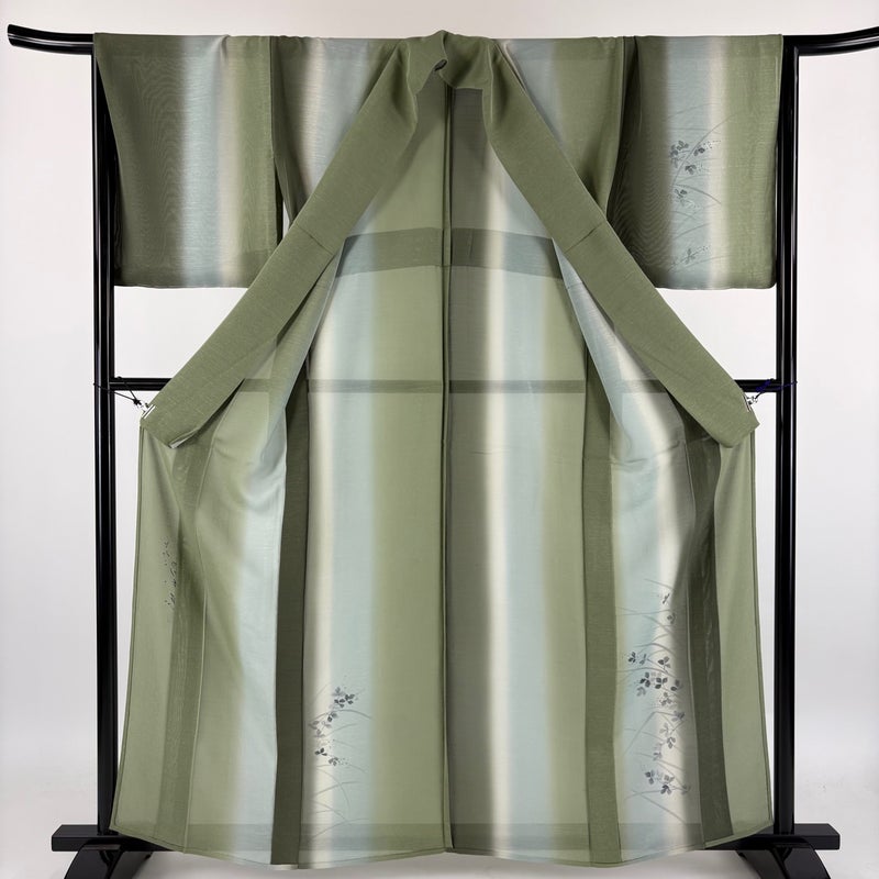 【付下げ】 灰色系 灰緑 秀品 A 約160cm~約169cm 裄丈67cm-68cm (L)size 袖丈49cm 9990-29990 美品 二万以下