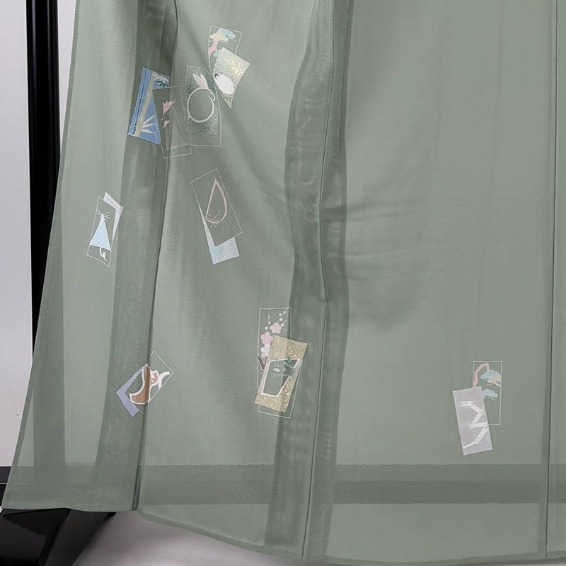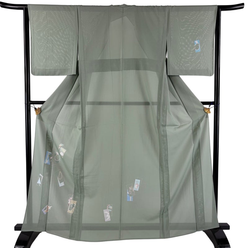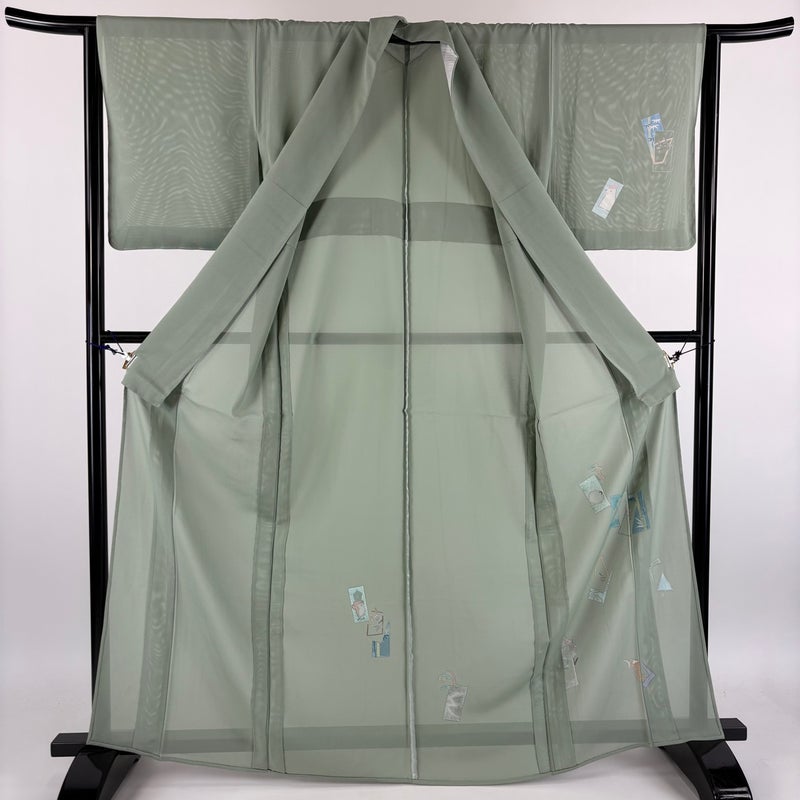 【付下げ】 灰色系 灰緑 秀品 A 約160cm~約169cm 裄丈63cm-64cm (M)size 袖丈49cm 9990-29990 美品 二万以下