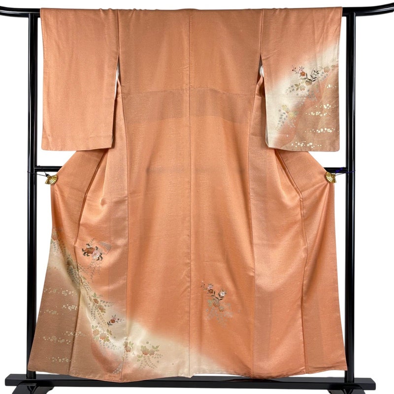【付下げ】 赤系 オレンジ 秀品 B 約150cm~約159cm 裄丈62cm以下 (S)size 袖丈50cm-60cm 4000-7980 二万以下