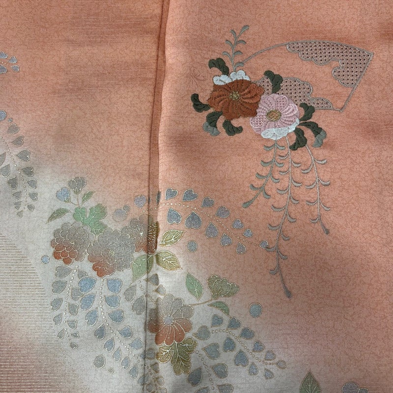 【着物ランク】秀品 【素材】正絹 【身丈】約156cm 【裄丈】約62cm 【袖丈】約60cm 【袖幅】約32cm 【前幅】約22cm 【後幅】約28cm 【サイズ】S 【着物仕立て】袷 【着用時期】10~5月 【状態ランク】ランクB 【着物着用シーン】披露宴、パーティー、式典、食事会、お茶会、正月