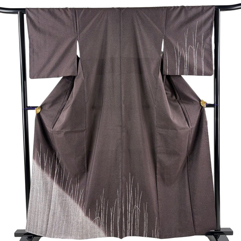 【付下げ】 茶系 茶紫 秀品 A 約160cm~約169cm 裄丈62cm以下 (S)size 袖丈49cm 7990-9980 美品 二万以下
