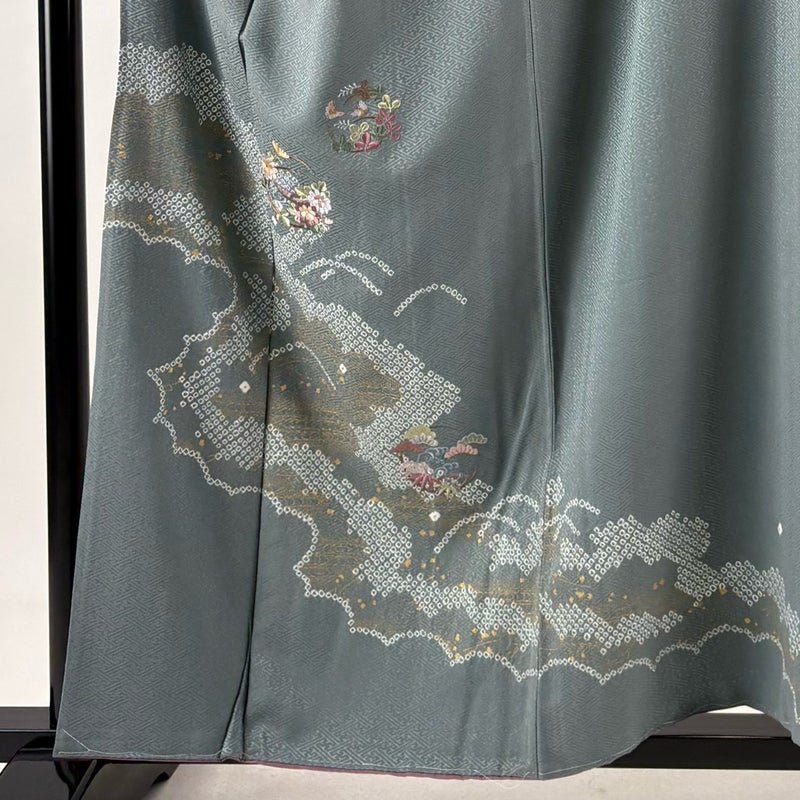 【付下げ】 灰色系 灰緑 優品 B 約150cm~約159cm 裄丈66cm (M)size 袖丈48cm 4000-7980 二万以下