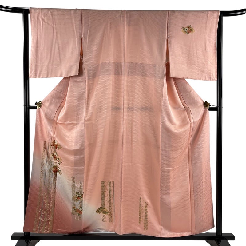 【付下げ】 赤系 薄ピンク 優品 B 約150cm~約159cm 裄丈63cm-64cm (M)size 袖丈49cm -3980 二万以下