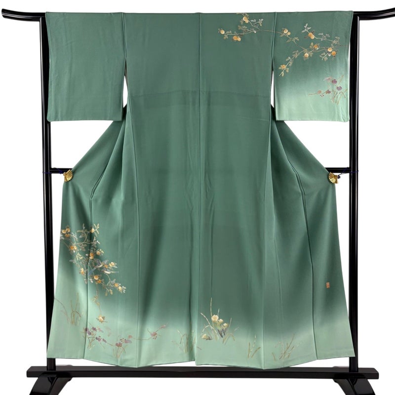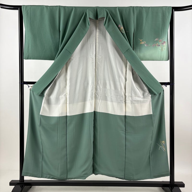 【付下げ】 緑系 薄緑 秀品 C 約150cm~約159cm 裄丈63cm-64cm (M)size 袖丈47cm 4000-7980 二万以下