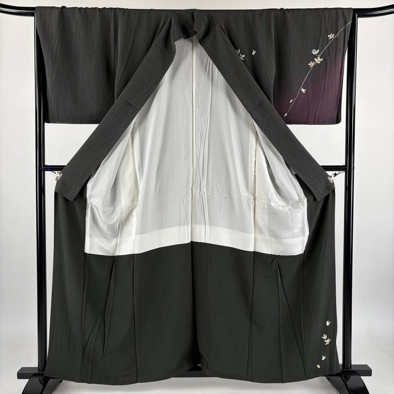 【付下げ】 緑系 深緑 秀品 B 約160cm~約169cm 裄丈65cm (M)size 袖丈49cm 4000-7980 二万以下