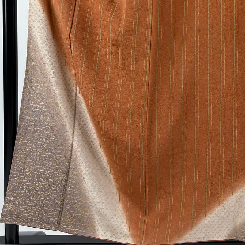 【着物ランク】秀品 【素材】正絹 【身丈】約154.5cm 【裄丈】約61.5cm 【袖丈】約44cm 【袖幅】約32cm 【前幅】約24cm 【後幅】約29.5cm 【サイズ】S 【着物仕立て】袷 【着用時期】10~5月 【状態ランク】ランクC 【着物着用シーン】披露宴、パーティー、式典、食事会、お茶会、正月