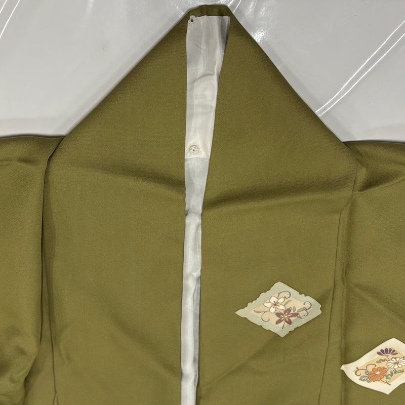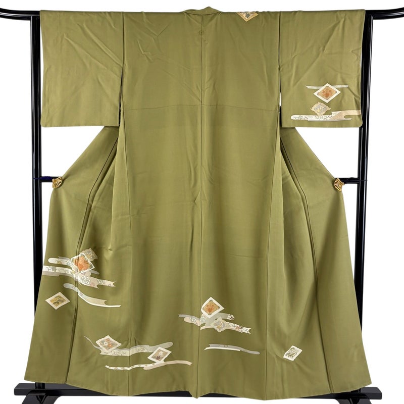【付下げ】 緑系 鶯色 秀品 B 約150cm~約159cm 裄丈63cm-64cm (M)size 袖丈47cm 4000-7980 二万以下