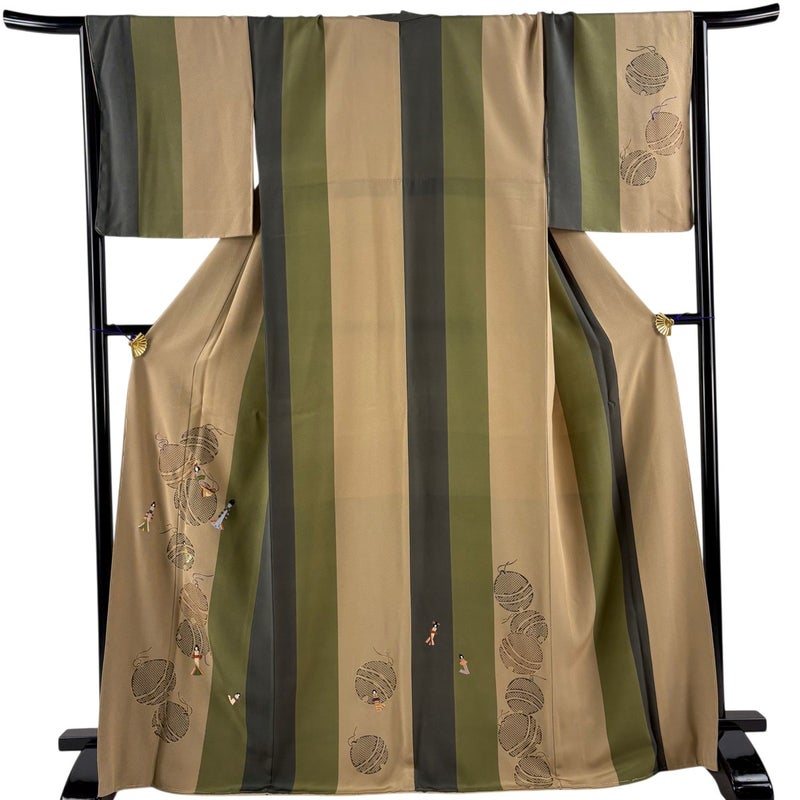 【着物ランク】秀品 【素材】正絹 【身丈】約168.5cm 【裄丈】約67.5cm 【袖丈】約49cm 【袖幅】約34cm 【前幅】約25cm 【後幅】約31cm 【サイズ】L 【着物仕立て】袷 【着用時期】10~5月 【状態ランク】ランクB 【着物着用シーン】披露宴、パーティー、式典、食事会、お茶会、正月