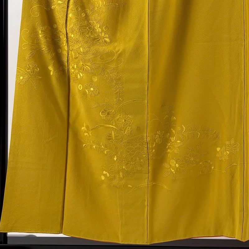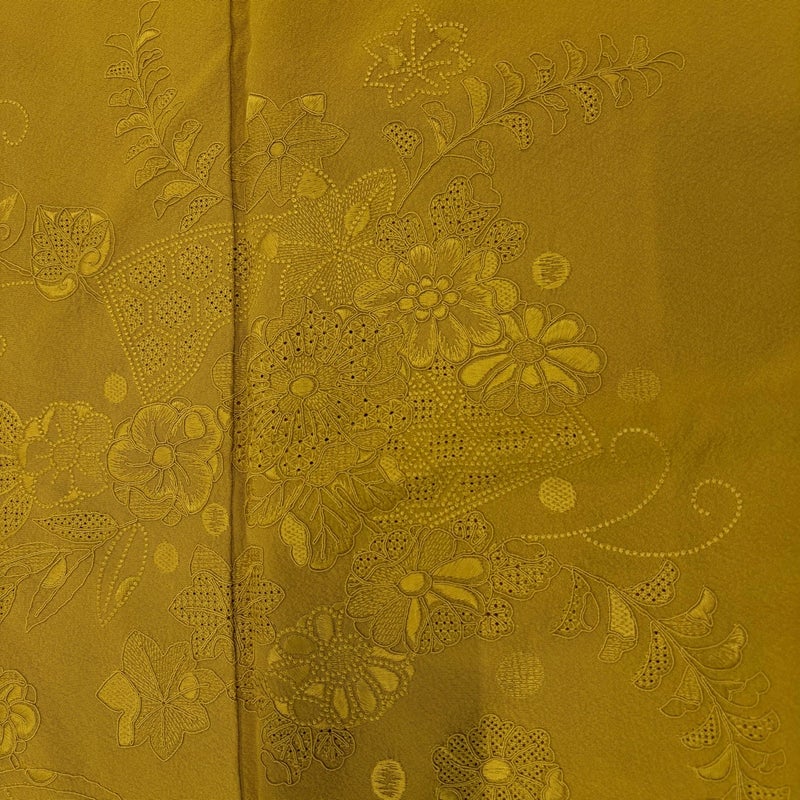 【付下げ】 黄色系 からし色 秀品 A 約150cm~約159cm 裄丈62cm以下 (S)size 袖丈47cm 7990-9980 美品 二万以下
