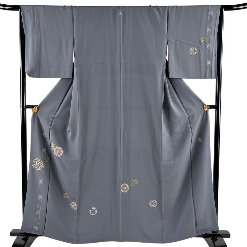 【付下げ】 灰色系 灰色 逸品 B 約160cm~約169cm 裄丈66cm (M)size 袖丈48cm 30000- 五万以上