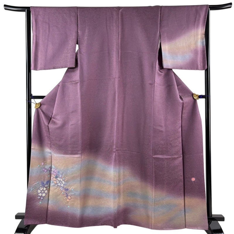 【付下げ】 紫系 紫 逸品 A 約160cm~約169cm 裄丈63cm-64cm (M)size 袖丈48cm 30000- 美品 五万以上