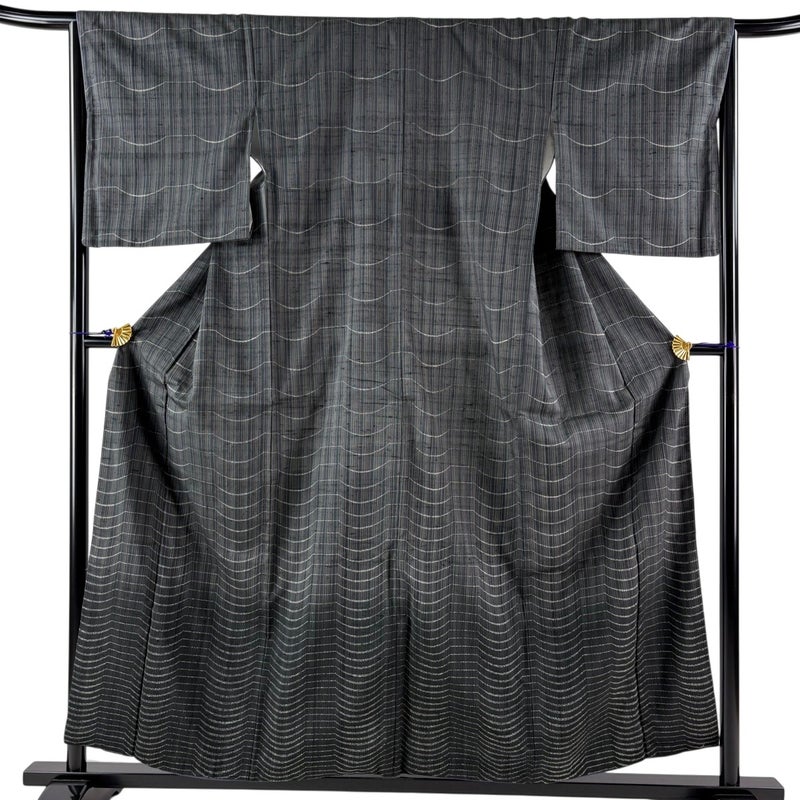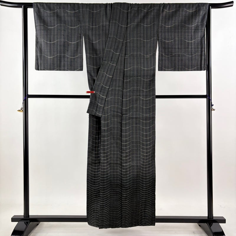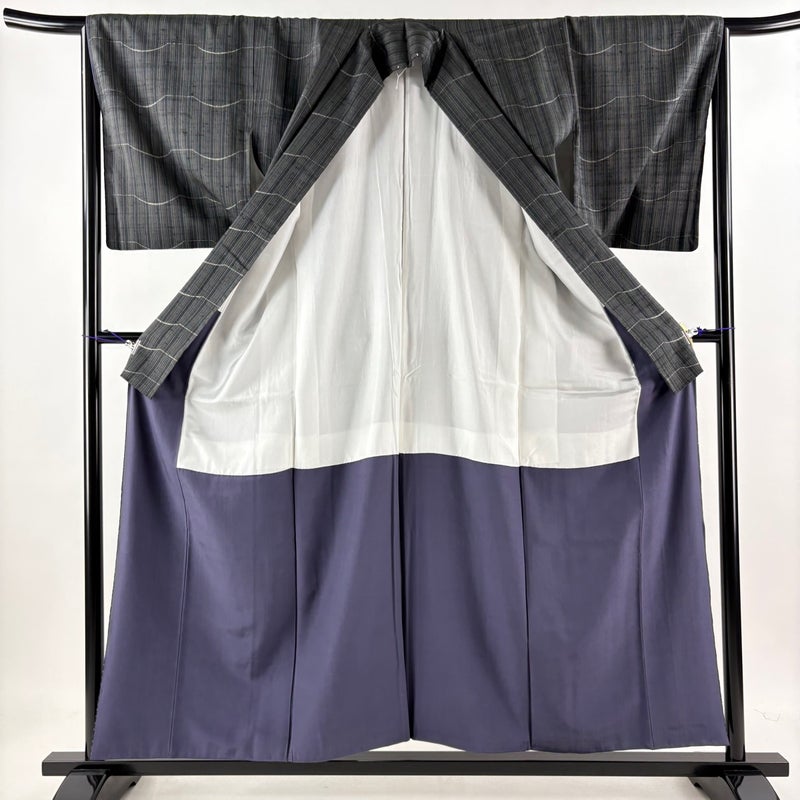 【付下げ】 灰色系 黒灰 逸品 B 約150cm~約159cm 裄丈65cm (M)size 袖丈50cm-60cm 30000- 五万以下