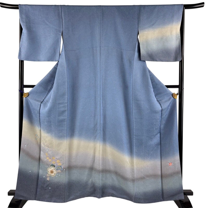 【付下げ】 青系 水色 逸品 A 約160cm~約169cm 裄丈66cm (M)size 袖丈48cm 30000- 美品 五万以上