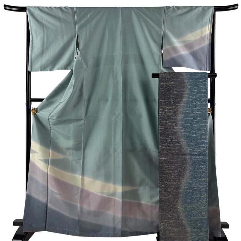 【付下げ】 灰色系 青灰色 秀品 B 約160cm~約169cm 裄丈65cm (M)size 袖丈49cm 9990-29990 五万以下